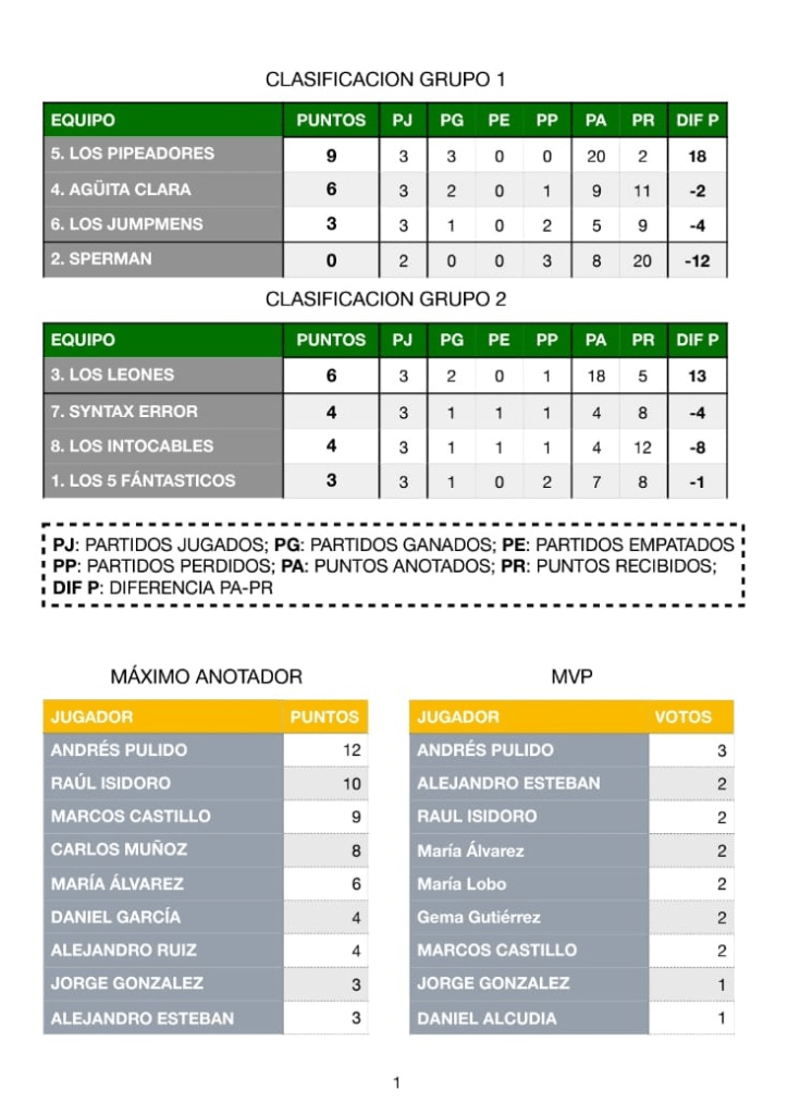 G: Pues espero que sí, he intentado hacer los equipos equilibrados, que sean mixtos y que no haya una clara superioridad por parte de ningún equipo, a sí que bueno, creo que todos van a realizar un buen rendimiento.